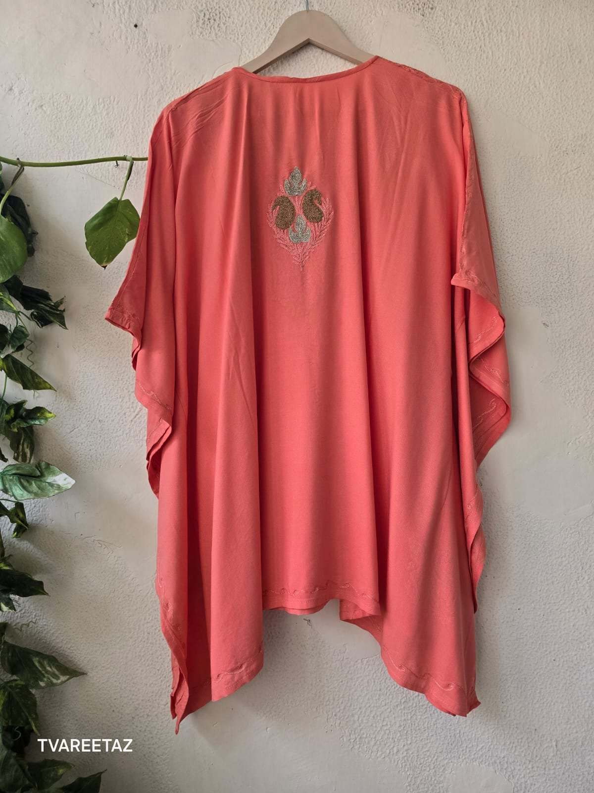 • Authentic Kashmiri Tilla Embroidery: Adorned with delicate, intricate Tilla work, each Kaftan showcases the traditional metallic thread embroidery that is a hallmark of Kashmiri craftsmanship. This fine detailing adds a touch of subtle shimmer and regal charm.