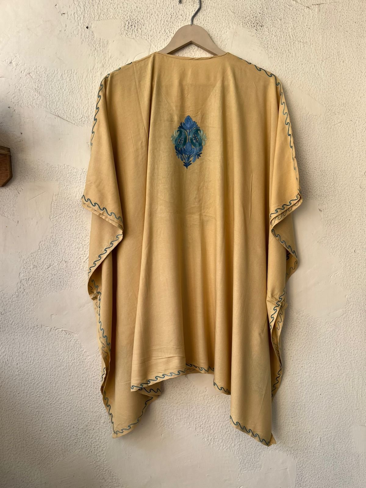 Introducing this short kaftan by Tvareetaz, thoughtfully designed to bring together the ease of everyday wear with the richness of Kashmiri craftsmanship.