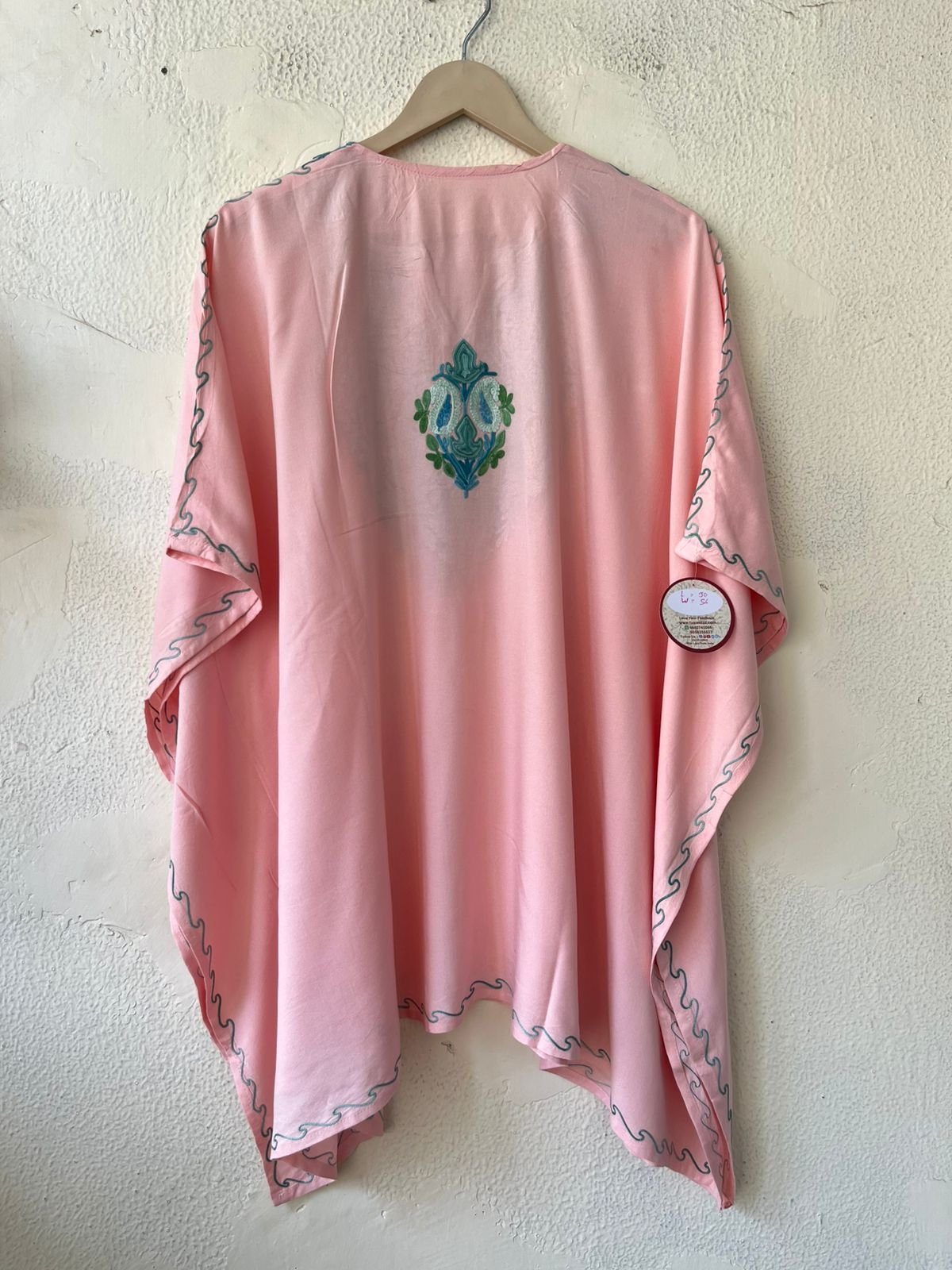 Introducing this short kaftan by Tvareetaz, thoughtfully designed to bring together the ease of everyday wear with the richness of Kashmiri craftsmanship.
