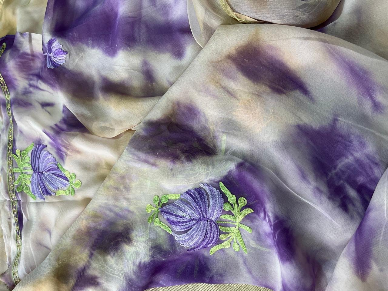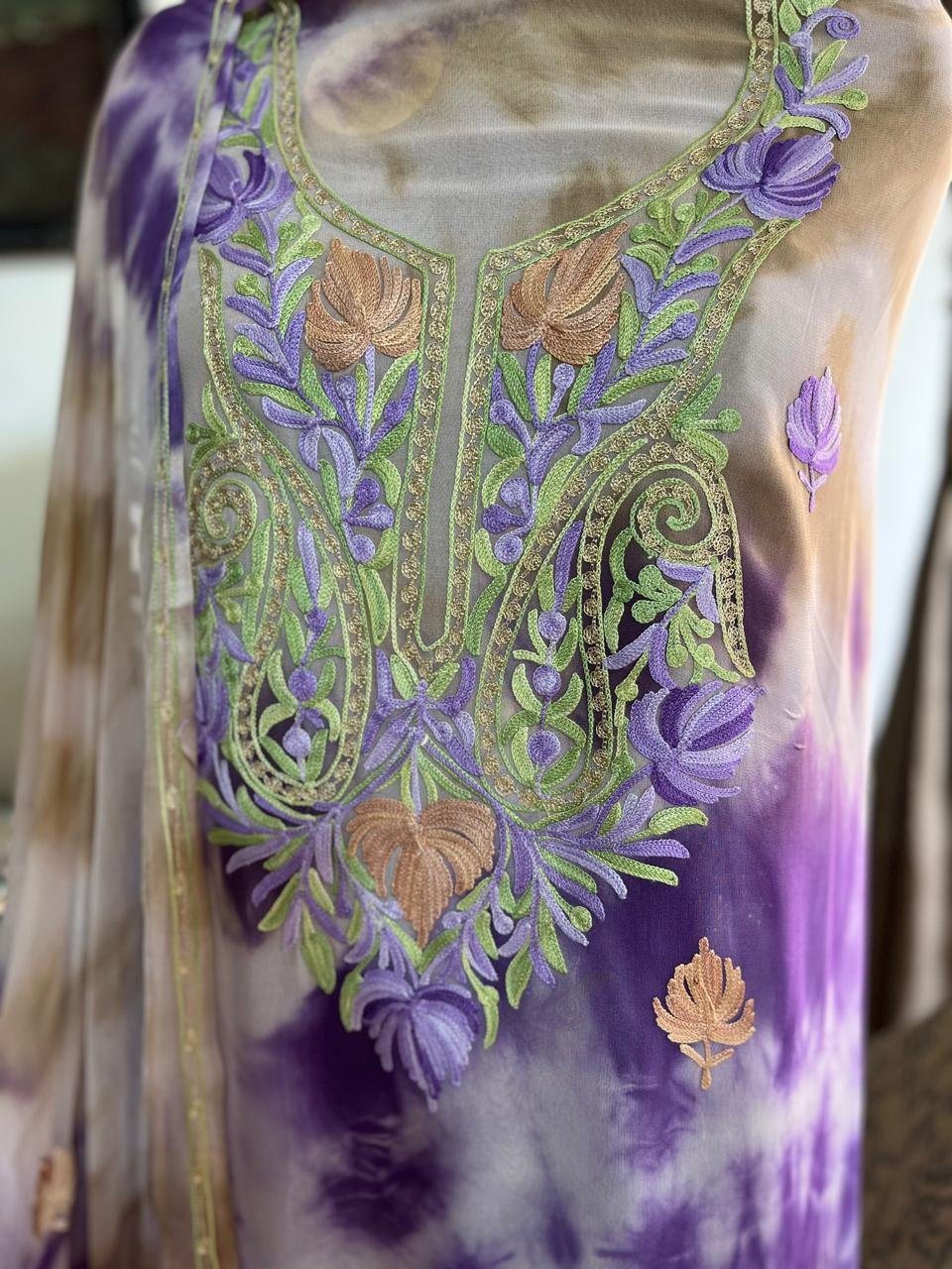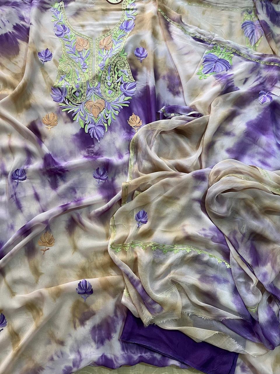 Shibori-Dyed Georgette Suit with Kashmiri Aari Embroidery